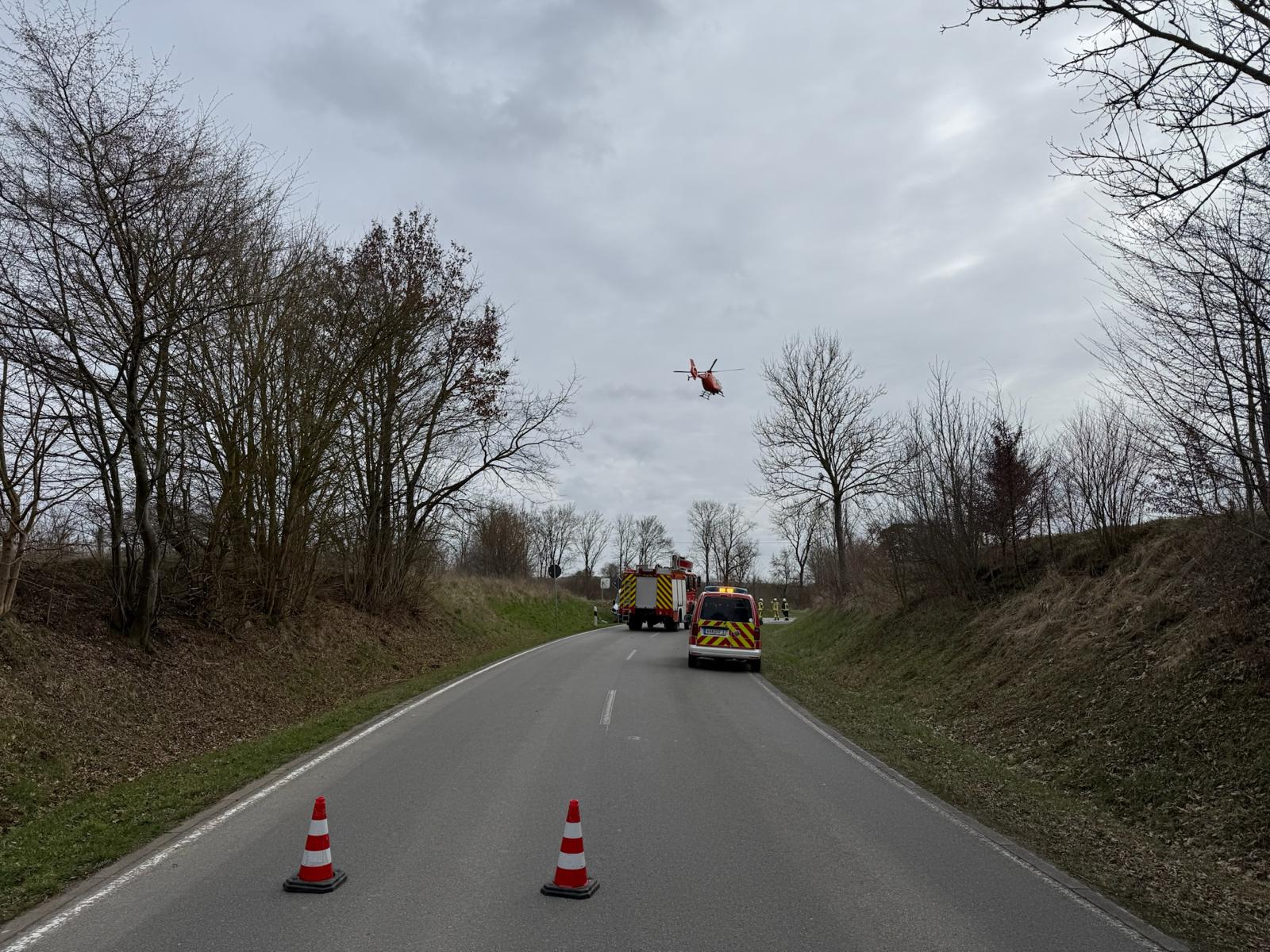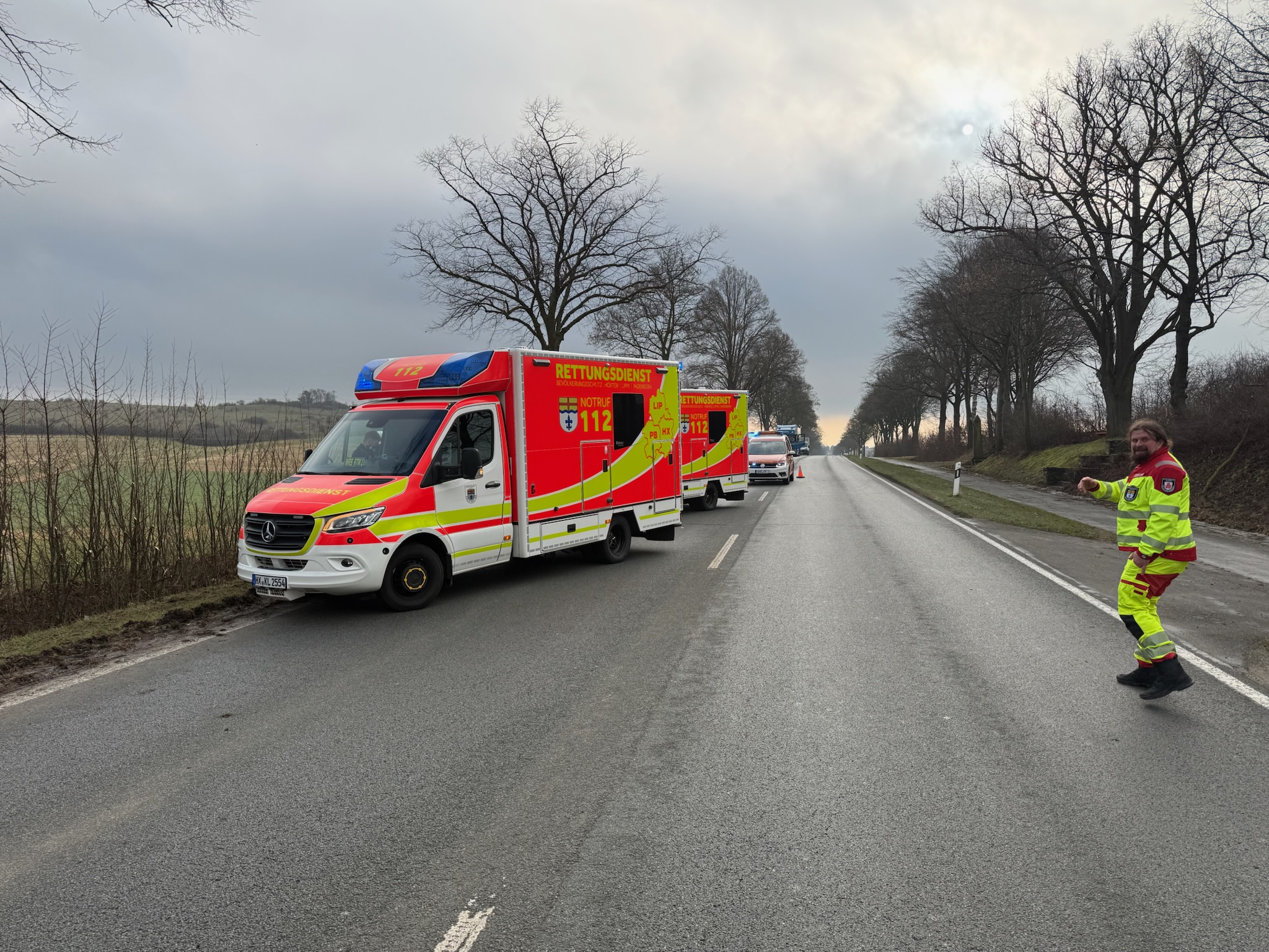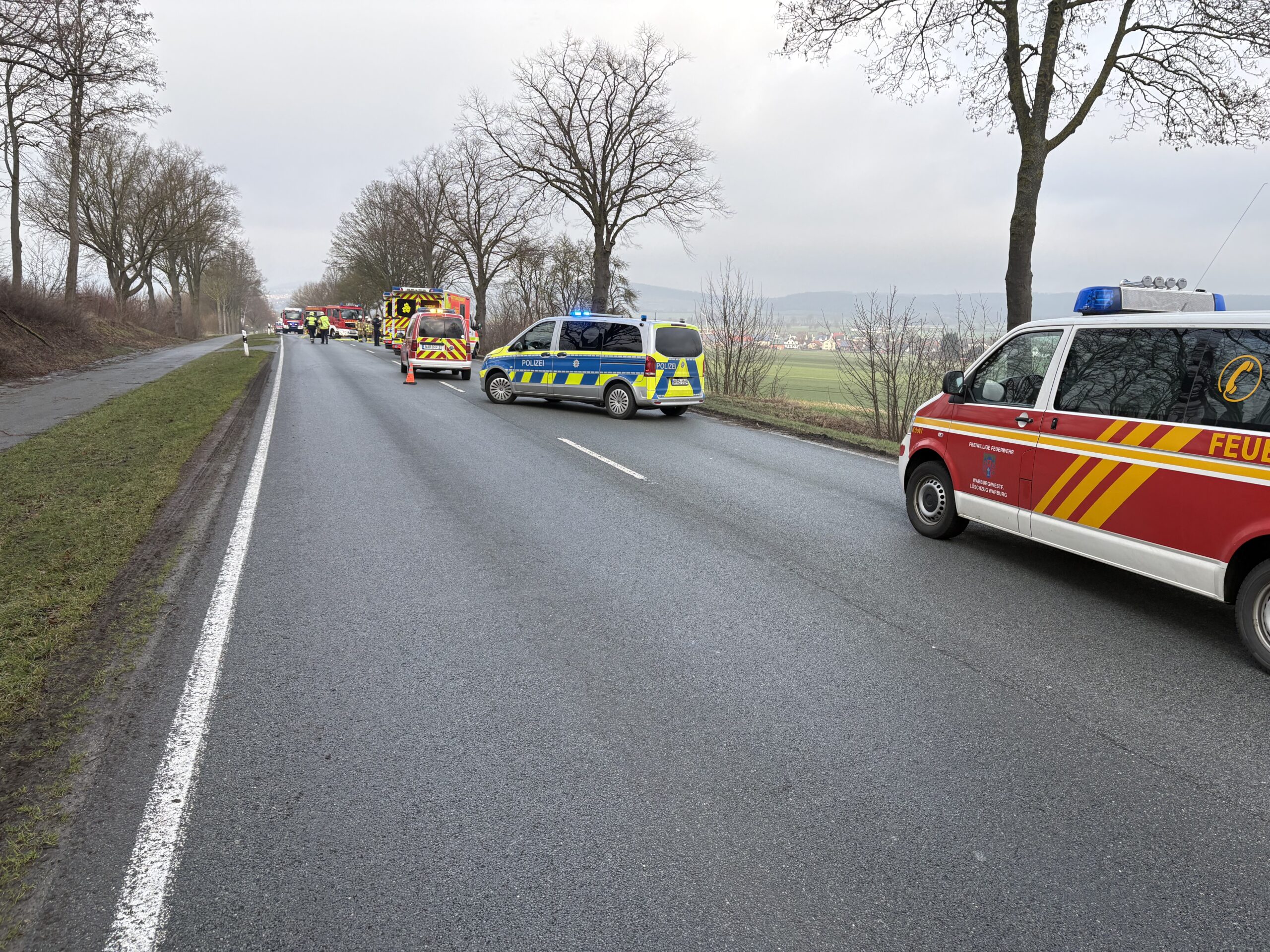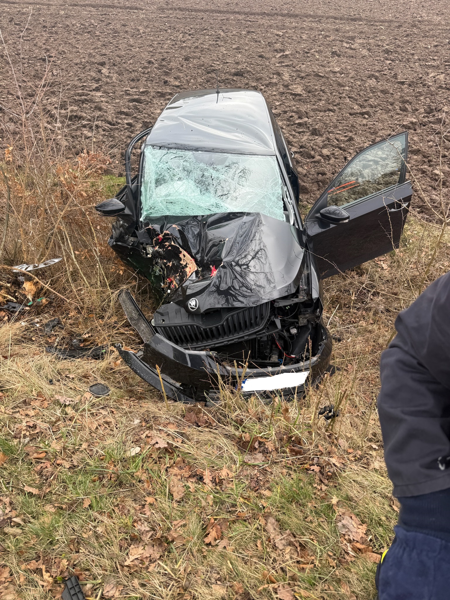 #45 am 25.02.2026, 11:00 Uhr, Dössel – K15 Dössel -> Hohenwepel, Hilfeleistung, PKW vor Baum, keine Person mehr im Fahrzeug, – Lage wie gemeldet. Wir sicherten die Unfallstelle ab, so dass der zeitgleich eingetroffene Rettungsdienst die medizinische Versorgung der verletzten Person übernehmen konnte. | Bild 1 & Bild 2 & Bild 3