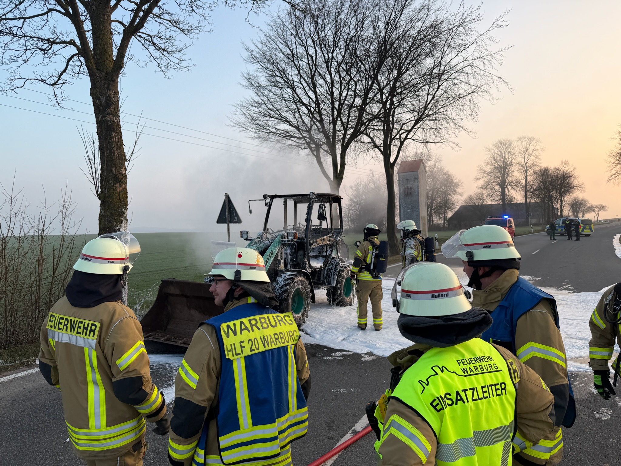 #23 am 31.01.2026, 11:03 Uhr, Germete – B252 Germete –> Auffahrt A44, Feuer, PKW Brand außerhalb Ortschaft, – Ein PKW stand bei Eintreffen in Vollbrand. Mit 2 Atemschutztrupps löschten wir den Brand. Die Untere Wasserbehörde sowie die Polizei waren auch mit uns im Einsatz. | Bild 1 & Bild 2 & Bild 3