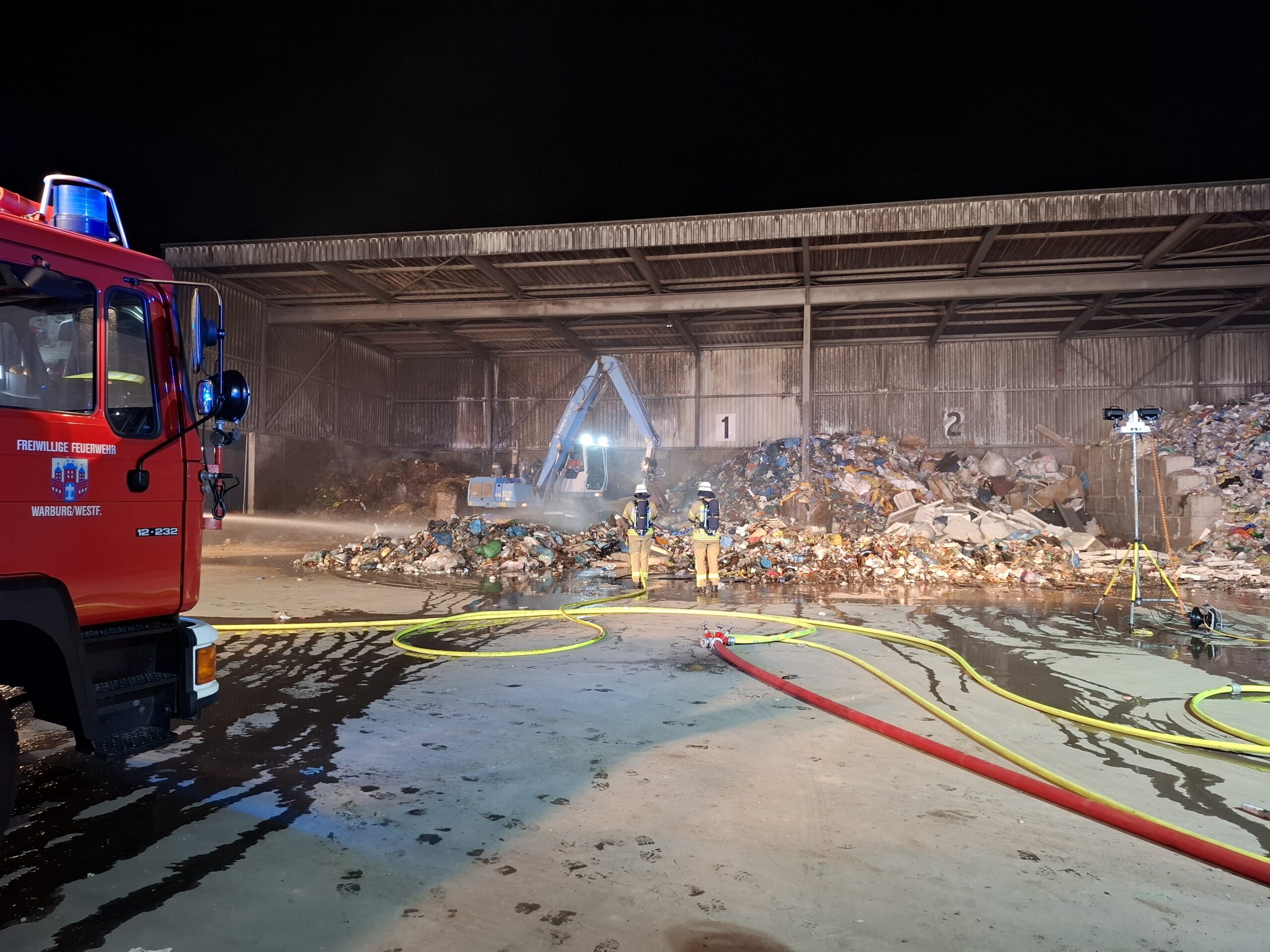 #58 am 07.03.2026, 20:18 Uhr, Rimbeck – Auf der Hellbecke, Feuer, Brandmeldeanlage ausgelöst, Bei Eintreffen standen ca 5 m x 5 m Müll in Flammen. Wir nahmen drei C-Rohre zur Brandbekämpfung vor unter Zuhilfenahme von 2 Baggern der Firma. Im Anschluss leuchteten wir die Einsatzstelle aus und kontrollierten die Brandreste mittels Wärmebildkamera. Anbei findet ihr auch einen Flyer des Kreises Höxters zur richtigen Mülltrennung zum Schutz der Umwelt und Vermeidung einer Brandentstehung. | Bild 1 & Bild 2 & Bild 3 & Bild 4