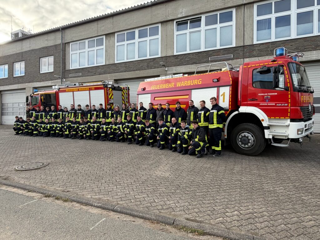Vom 31.10. bis zum 22.11.2025 haben insgesamt 49 Feuerwehrfrauen und Feuerwehrmänner aus den Stadtgebieten Borgentreich, Warburg und Willebadessen am Truppmann-Modul 1 (Grundlehrgang Teil 1 mit 70 Unterrichtsstunden) teilgenommen und damit den Grundstein für ihre zukünftige Feuerwehrlaufbahn gelegt.